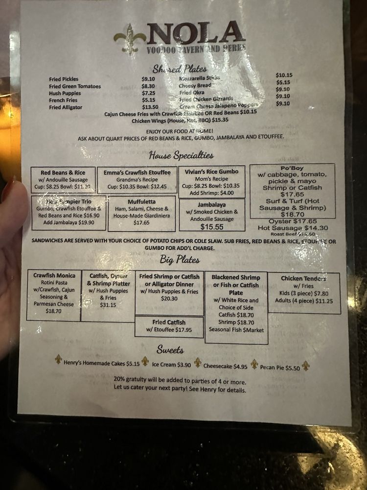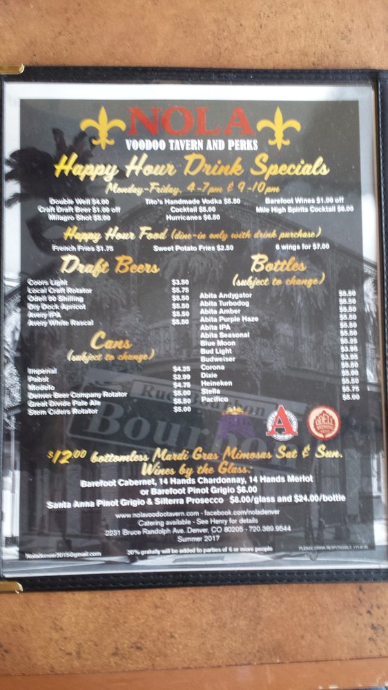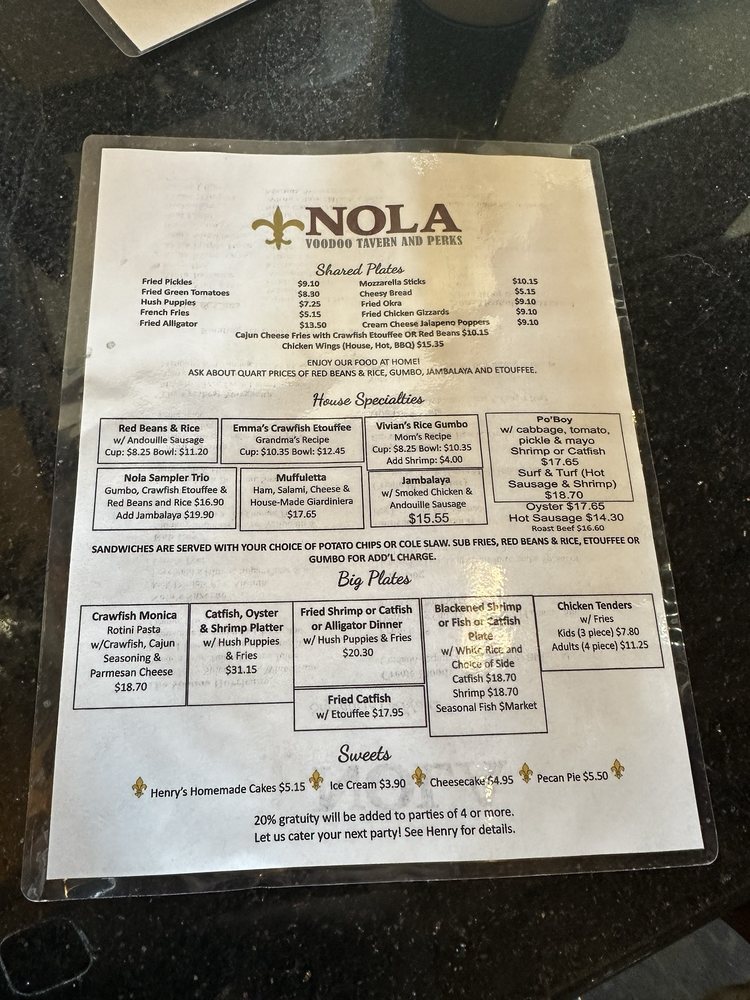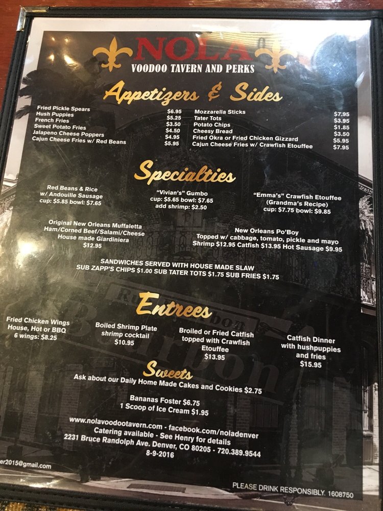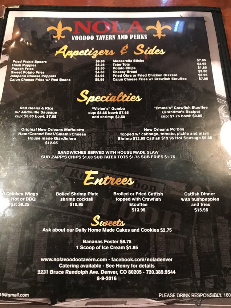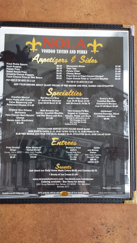 Introducing the menu at Nola Voodoo Tavern, a Black-owned restaurant in Denver, CO, offering a cozy and authentic New Orleans ambiance. The menu features Cajun and Creole dishes like Surf & Turf Po'Boy, jambalaya, etouffee fries, hurricanes, hush puppies, and shrimp po boys. Customers rave about the delicious food, welcoming atmosphere, and attentive service provided by the owner, Henry, and his staff. The restaurant also offers unique options such as bowl crawfish on weekends and a Trio Sampler for those looking to try a variety of dishes. With street parking available and a lively bar vibe, Nola Voodoo Tavern is the perfect spot for intimate gatherings or nights out. Don't miss out on the opportunity to experience the flavors of Louisiana right in the heart of Denver.